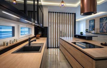 - Prémium minőségű, gépesített konyha konyhaszigettel