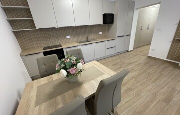 Helyszín: Nyíregyháza - Belváros, Selyem utca.Alapterület: 55 négyzetméter.Elosztás: 1 hálószoba és 1 nappali.Állapot: Új építésű, modern stílusú.Konyha: Teljesen gépesített, modern konyhabútorral felszerelt.Fűtés: Egyedi gázfűtés kondenzációs kazánnal és padlófűtéssel a gazdaságos fenntartásért.Felszereltség: Klímaberendezés és beépített szekrények biztosítják a kényelmet.Kültér: Saját erkély tartozik a lakáshoz.Költözhetőség: Azonnal birtokba vehető, ideális 1-2 fő részére.
