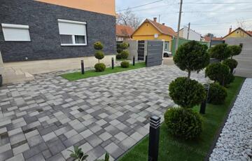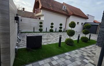 <p>Az ingatlan valódi különlegessége a <strong>60 nm-es, igényesen kialakított külső wellness részleg</strong>, ahol <strong>jacuzzi</strong>, prémium burkolatok és <strong>Olaszországból érkezett minőségi járólapok</strong> teremtenek exkluzív pihenőzónát. A kert <strong>mesébe illő</strong>, gondosan karbantartott: gömb tuják, <strong>30 nm műfű</strong>, letisztult, harmonikus összkép jellemzi.</p>