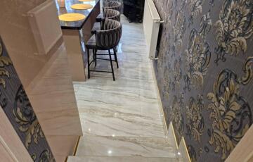 <p><strong>Az alsó szinten</strong> egy <strong>meseszép, tágas nappali</strong> fogadja a belépőt, amely tökéletes központja a családi életnek. Itt kapott helyet továbbá egy <strong>vendégszoba</strong>, közlekedő, <strong>fürdőszoba külön WC-vel</strong>, valamint egy <strong>igényes, egyedi gyártású konyha étkezővel</strong>, amely minden részletében a prémium életérzést tükrözi. A konyha <strong>gránit munkapulttal</strong>, teljes gépesítéssel, <strong>jégadagolós hűtő-fagyasztóval</strong>, konyhaszigettel készült, az étkezőasztalban pedig <strong>6 praktikus fiók</strong> került kialakításra. Az alsó szinten található még egy kazánház is.</p>