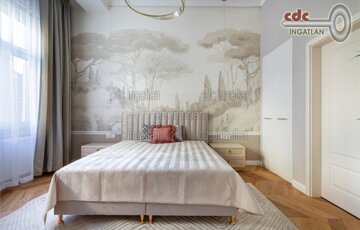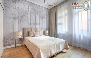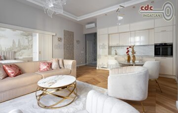 Belvárosi elegáns, exkluzív luxuslakás eladó! V. kerületben, a Nyáry Pál utcában, a Váci utca szomszédságában, III. emeleti, 89 m2-es nappali + 2 hálószobás, duplakomfortos, vendég wc-s, luxuslakás eladó. Az ingatlan prémium minőségű felújításon esett át, melynek során a legkiválóbb minőségű anyagokat használták fel, a lakás minden részletében az eleganciát tükrözi. Az ingatlan amerikai konyhás nappalival rendelkezik, a fő hálószoba és a nappali a csendes Nyáry Pál utcára néz, míg a második hálószoba a nyugodt belső udvarra nyílik. Mindkét hálószobához külön fürdőszoba tartozik, a fő hálószobához egy elegáns káddal, WC-vel és bidével felszerelt fürdő kapcsolódik, míg a második hálószobához egy modern zuhanyzós. A lakásban külön vendég WC is található. Az ingatlan prémium minőségű bútorokkal és gépekkel együtt eladó, így az új tulajdonos azonnal beköltözhet egy teljesen felszerelt, exkluzív otthonba. A teljes körű felújítás során új nyílászárók lettek beépítve, valamint minden víz- és villanyvezetékek cserélve lett. Designer csillárok, beépített szekrények, minőségi szaniterek és prémium burkolatok kerültek beépítésre. A 3,6 méteres belmagasság és a chevron tölgyfa parketta különleges, elegáns hangulatot kölcsönöz az otthonnak. A konyha teljesen gépesített, AEG márkájú készülékekkel felszerelt: mosogatógép, hűtő fagyasztóval, sütő, főzőlap, páraelszívó és mosó- szárítógép is rendelkezésre áll. Az ingatlan kényelmét három légkondicionáló és automata redőnyök biztosítják. A fűtés és a melegvíz kondenzációs kazánról üzemel, a közös költség vízdíjat és célbefizetést tartalmaz, melynek összege 42.809.-Ft havonta. Ez a lakás nem csak otthonként, hanem befektetésként is tökéletes választás azok számára, akik a belvárosi luxust és kényelmet keresik. Az ingatlan minden részlete a legmagasabb színvonalat képviseli, így garantáltan megfelel a legigényesebb vásárlók elvárásainak is.