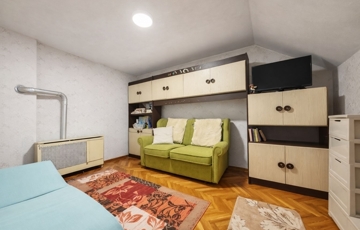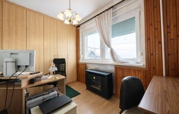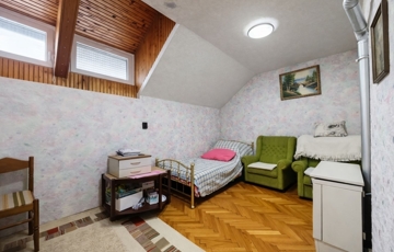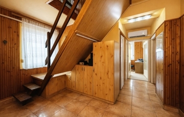 - Emelet: közlekedőből nyíló két különálló szoba, egy második fürdőszoba WC-vel, illetve egy jelenleg beépítetlen padlástér