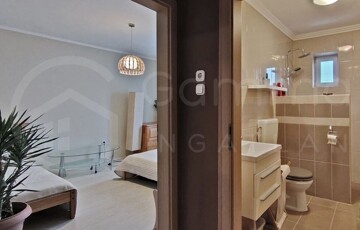 • Nyílászárók: Korszerű műanyag hőszigetelt ablakok rovarhálóval, biztonsági bejárati ajtó, nagy méretű teraszajtók (az emeleten helytakarékos tolóajtó).