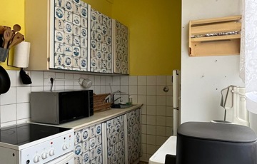 A lakás átalakításában sok lehetőség van, a konyha könnyen átvihető a nappaliba és egy extra nagy ablakos szobát kaphatunk.