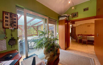 A 2000-ben épült, 150 négyzetméteres családi ház az 549 négyzetméteres telek első felében helyezkedik el, így helyet hagyva a hátul kiépítésre került kerti grillnek, beépített medencének, és egy 30 négyzetméteres melléképületnek, ahol egy szauna garantálja a maradéktalan kikapcsolódást.