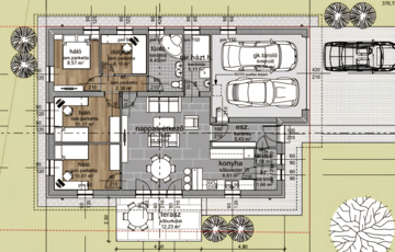 Kiváló adottságú telek előnyeit figyelembe véve alaposan átgondolt tervezés alapján épül az ingatlan benapozottsága optimális.