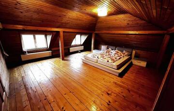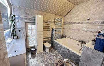 A ház 3 szintes, a földszinten: nappali, szoba, konyha, mosdó, kazánház áll rendelkezésünkre, az emeleten: 3 szoba, 1 félszoba, tágas fürdőszoba. Tetőtérben pedig 2 nagy fenyő burkolatú szoba került kialakításra. A gázkazán és teljes gázcsőhálózat cserére került 2024-ben. A ház rendelkezik egy 124 M2 melléképülettel, ahol a medence és a szauna kapott helyet, napelem fűti. A ház biztonságát kamera és riasztó védi.