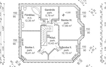 Az egész családi ház pinceszint + 2 szinten a korábbi családi ház 90%-os elbontása után a pinceszint 90 cm mélységben újra betonozásával és szigetelésével 2010-ben épült, az előírások szerint megfelelő vízszigeteléssel, 40 cm-es falvastagsággal, 18 cm vastag vasbeton gerendás födémszerkezettel, POROTHERM 30 N+F tégla falazat, a tetőtérben POROTHERM 38 HF Profi tégla falazattal 12 cm-es válaszfalak alkalmazásával, tetőtér beépítéses tetőszerkezettel, TONDACH cserép héjalással, üvegszál betétes alátét fóliával északnyugati fekvéssel, remek elosztású szobákkal, nagyon tágas, amerikai konyhás nappalival. A ház minden szempontból kellően világos.