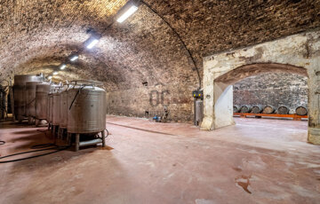 Présház és pincerendszer – vasbeton vázas, tégla falazatú présház (jelenleg leromlott állapotban), amelyből egy változó, 3,35–4,95 m belmagasságú pincerendszer nyílik. A pince víz-, villany- és csatornaközművel ellátott.