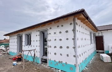 Külső falazat: Ytong 30 cm-es, 12 cm-es Dryvit hőszigeteléssel, 20 cm-es cellulóz alapú fújt födém szigeteléssel.