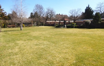 A kertész által kiválóan karbantartott kertben az örökzöldekkel övezett gyepszőnyeg a legmagasabb minőségi elvárásokat is kielégíti.