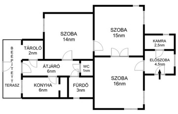 - Egyszintes, 3 szobás elrendezés