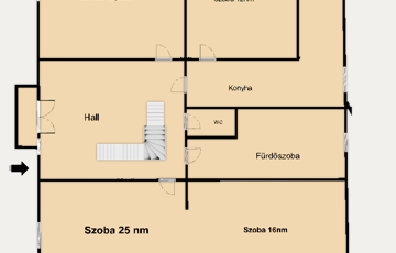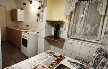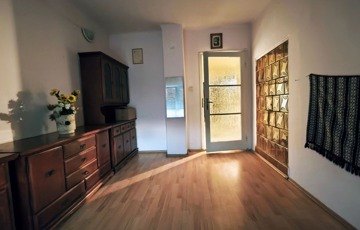 A bejárati ajtón belépve, a lépcsőkön felhaladva a tágas előszobába érkezünk, ahonnan minden helyiség nyílik: az utcára néző két nagy szoba (melyeket térelválasztással használtak nappali+ hálóként), egy-a két ablaka által világos- 18,4 nm-es nagyobb szoba, és a kisebb 12nm-es, melyek mindegyike az udvarra néz, az L alakú konyha (ehhez kamra is tartozik), a kádas fürdőszoba, a külön WC.