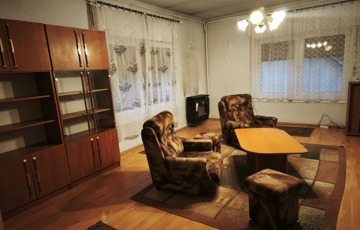 Az 1950-es években téglából épült, jó állapotú családi ház körbejárható, lapos tetejét 2005-ben újították fel. A lakás ablakai műanyagból készültek, redőnnyel ellátottak. A fűtés gázkonvektorral történik, a meleg vízről éjszakai árammal működő villanybojler gondoskodik. A két udvarra néző szoba között egy szép cserépkályha található, mely olykor mindkét szoba fűtésében jó szolgálatot tehet.