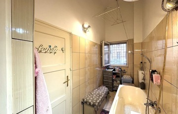 három külön nyíló hálószoba, két fürdőszoba, valamint utcai és udvari nézetű ablakok biztosítják a fényt és a jó térérzetet. A 405 cm-es belmagasság lehetőséget teremtett egy praktikus galéria kialakítására, amely tovább növeli a lakás életterét.
