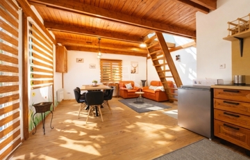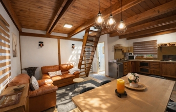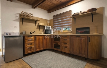 A földszinten amerikai konyha, fürdőszoba és WC található. A tetőtér beépített, két szoba került kialakításra.