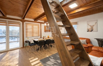 A földszinten amerikai konyha, fürdőszoba és WC található. A tetőtér beépített, két szoba került kialakításra.
