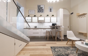 Kiadó az Ó utca központi, mégis csendes részén egy 34 m²-es, belső állógalériás ingatlan, amely lakásként és irodaként egyaránt kiválóan használható.