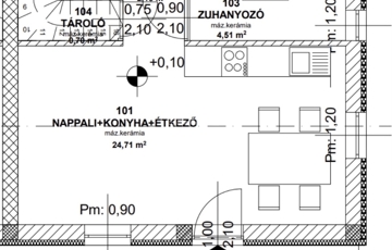 földszint: - nappali-konyha-étkező (24,71 nm)