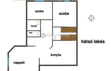 A hátsó lakás tetőtere beépíthető, így még 2 szoba könnyedén kialakítható.