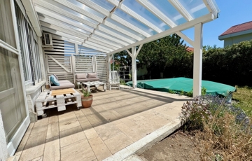 A Balaton északi partjának egyik legszebb városában, Balatonfüreden, kiváló közlekedés és ellátottság mellett, kertvárosi környezetben, 10 perc sétára a vitorlás kikötőtől, és a Tagore sétánytól, 586 m2-es összközműves telken, 1990-ben épült, 190 m2-es lakóterületű, 2 szintes, dupla komfortos, dupla nappalis + 3 hálószobás, a földszinten található nappaliból közvetlen 40 m2 -es teraszkapcsolattal rendelkező, kiváló elosztású, külön nyíló szobás, napos-világos, K-NY-i tájolású, alacsony fenntartású, kombinált gázcirkó és cserépkályha fűtésű, jó állapotú, 2018-ban új thermo ablakokra cserélt, klimatizált, riasztórendszerrel felszerelt családi ház, beépített, gépesített konyhával, nagyméretű tárolóval, garázzsal, úszómedencével, rendezett kerttel, rugalmas költözéssel eladó.