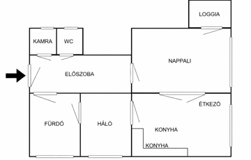 A lakás elosztása kiváló, a fürdőszobája is ablakos, WC külön helyiségben található, extra tárolási lehetőségként az előszobából nyíló gardrób szolgál.