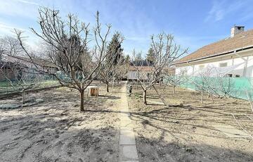 A 880 m²-es, 15 méter utcafronttal rendelkező telek igazi kertvárosi hangulatot áraszt. A kertben 25 darab termő gyümölcsfa található, amelyek nemcsak esztétikai értéket képviselnek, hanem bőséges termést is biztosítanak az új tulajdonos számára.