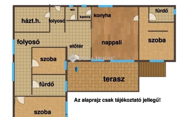 A 137 nm-es, egyszintes, élhető méretű ingatlanban tágas, nagy belmagassággal rendelkező amerikai-nappali és 3 háló került kialakításra. Fentieken kívül 2 fürdőszoba, kamra és háztartási helyiség is helyett kapott udvari beállója és hatalmas terasza mellett.