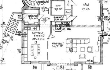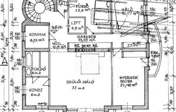 - hatalmas, kandallós nappali, szeparált konyha étkező, 4 háló + 120 m2-es tetőtéri apartman (nappali, háló, konyha, fürdő),
