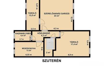 Szuterén: 2 tároló, közlekedő, mosókonyha, kazánház.