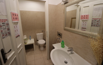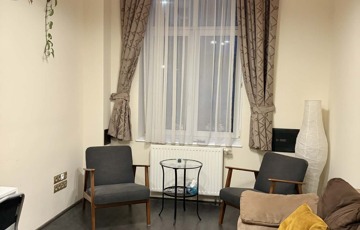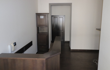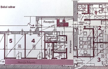 7 szobából (irodából) áll, jelenleg egy közösségi konyha, recepció, vendég -illetve dolgozói mellékhelyiség szolgálja a kényelmet.