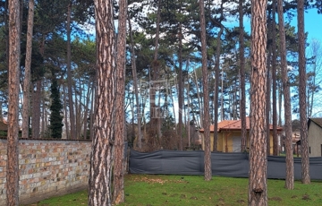 - Az út aszfaltos, a kert egy része térkövezett és babérmeggy bokrokkal, fenyőfákkal beültetett.