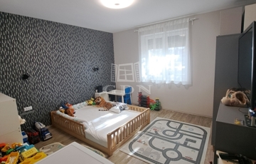 - A lépcsős, fedett bejáratról a tágas nappali-étkezőbe jutunk. Innen nyílik a 2 szoba, a konyha, a fürdőszoba és a WC.