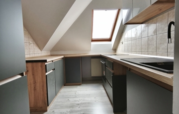Praktikus elrendezés: Egyedi beépített konyha, külön WC, a fürdőszobában pedig kád és zuhanyzó is található.