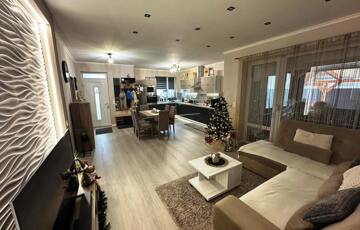 Nyíregyháza Ságvári kertvárosának új lakónegyedében, csendes, aszfaltozott utcában eladó egy 2019-ben épült, 3 szobás, amerikai konyhás-nappalis ikerház, dupla garázzsal, 450 m²-es parkosított telken.
