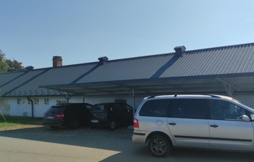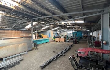 Gyártásra alkalmas, fűthető csarnok rész mérete 400 m2, a belmagassága 3,2-3,6m közötti.