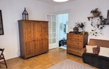 Az Amerikai út közelében eladó egy jó állapotú másfélszobás földszinti kertkapcsolatos lakás egy egy emeletes házban.