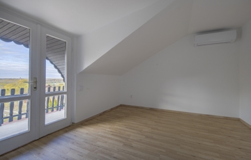 A teraszok és a szobaablakok délnyugati fekvésűek, az emelet panorámás. Gáz a telken nincs, a fűtés a földszinten és az emeleten is inverteres klímával van megoldva.