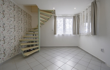 Bruttó 34 m2-es, belső két szintes, 2 szobás, klimatizált, nagy teraszos kertes ház kiadó Ecseren, a Zártkerti dűlőn.