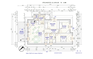 A tető héjazata antracit betoncserép lesz, a homlokzatok 12cm Austrotherm Grafitos EPS, a padló 10cm Austrotherm AT-N100-as, a vízszintes födém 25cm Ásványgyapot szigeteléssel lesz ellátva.