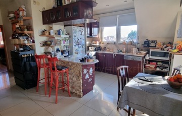 Az emeleti lakásban található egyedi, prémium gépekkel felszerelt konyhabútor a vételár részét képezi.