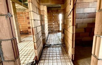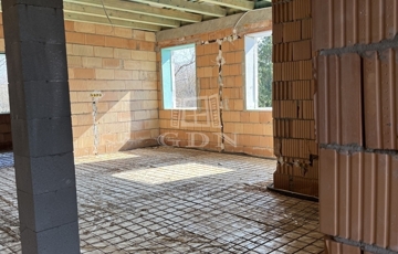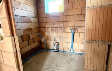 A képeken az emeleti lakás látható, ami külön lépcsőházból megközelíthető. A telek két utcára nyílik, így a két lakás és a hozzájuk tartozó telekrész is külön utcáról bejáratos.