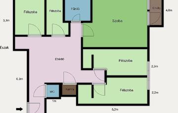 Eladó Újpest kertvárosi részén egy 88nm-es, jó állapotú, földszinti, 5 szobás lakás.