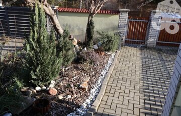A nappalihoz kapcsolódik egy 14 m2-es terasz, amely a füvesített kertre néz; tökéletes helyszín pihenésre és baráti, családi összejövetelekre.