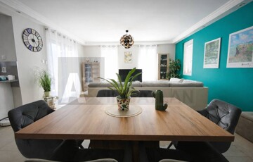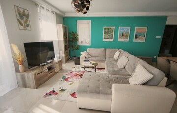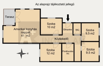 - helyiségek: 41 m²-es amerikai konyhás nappali beépített konyhai gépekkel+ étkező bútorral + 4 külön bejáratú szoba + fürdőszoba tusolóval, sarokkáddal és WC-vel + külön WC