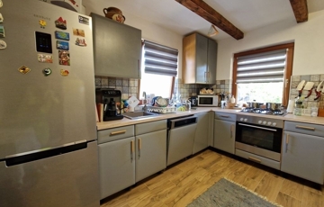 Eladó egy felújított, 30 nm alapterületű, két szintes kis családi ház Nagykozárban, Pécstől mindössze 8 km-re!**Eladásra kínálunk egy 3023 nm-es telken található, állandó lakhatásra is alkalmas ingatlant Baranya megye egyik kedvelt településén, Nagykozárban, annak is a szőlőhegyi részén. Az ingatlan csendes, nyugodt környezetben helyezkedik el, mégis közel a városhoz, így ideális választás mindazoknak, akik szeretnének távol lenni a város zajától, de mégis elérhető közelségben maradni.A területen két épület található. A főépület két szintes, összesen két hálószobával az emeleten, a földszinten pedig egy jól felszerelt konyhával, fürdőszobával, WC-vel és egy borospincével. A másik épület egy 15 nm-es kis ház, amely sokféleképpen hasznosítható: lakóingatlanként, akár a tetőtér beépítésével megnövelve, akár tárolóként.Az udvaron további melléképületek is helyet kaptak: egy 12 m2 garázs, egy 4 m2 kerti fatároló, valamint egy 51 méter mély fúrt kút, amely biztosítja az ingatlan vízellátását. A villamosenergia-ellátás 32 ampererősségig bővített, +20 amper H tarifa, a vízellátás a kútból történik, a szennyvíz pedig emésztőbe kerül. Az ingatlan fűtését jelenleg egy hagyományos cserépkályha biztosítja, emellett az idei évben kettő darab hűtő-fűtő klíma is beépítésre került, amelyek további kényelmet nyújtanak az ingatlan lakóinak.Az ingatlan néhány évvel ezelőtt teljeskörű felújításon esett át: új konyhabútor, új fürdőszoba, valamint a víz- és villanyvezetékek cseréje is megtörtént. Az emeleti tetőtér beépítésre került, és az összes nyílászárót is kicserélték. Az udvar egyik része parkosított, egy része gyümölcsös, míg a másik része szántóföldi művelésre alkalmas, így ideális lehet kertészkedők vagy állattartók számára is.Ha Ön is szereti a csendet, nyugalmat, és szeretne egy olyan ingatlant, ahol nem kell a felújítási munkákkal bíbelődni és nincs más dolga csak beköltözni, és a természet közelsége és a város közelsége egyaránt adott, ne hagyja ki ezt a lehetőséget! Az ingatlan tehermentes rendezett tulajdonbizonyokkal rendelkezik.Érdeklődés esetén keressen bizalommal!