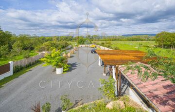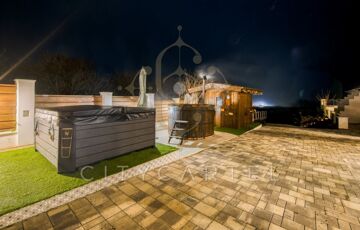 A közel 8000 nm-es, belterületi, teljesen körbekerített telek valódi élményteret kínál a vendégek számára: