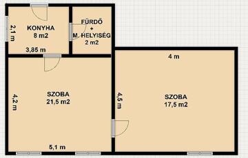 2 szoba, konyha, zuhanyzós fürdőszoba + wc