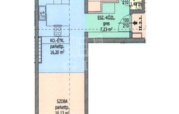 nappali-étkező-konyha 32,33m2, előszoba 7,23m3, szoba 12,15m2, szoba 8,12m2, fürdőszoba 3,73m2, toalett 1,48m2, erkély 5,78m2;