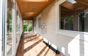 A ház egy kocsifelhajtón keresztül közelíthető meg, így intim, belső kerttel rendelkezik. A bejárat egy hangulatos télikertbe vezet, amely világos, barátságos fogadótérként szolgál.